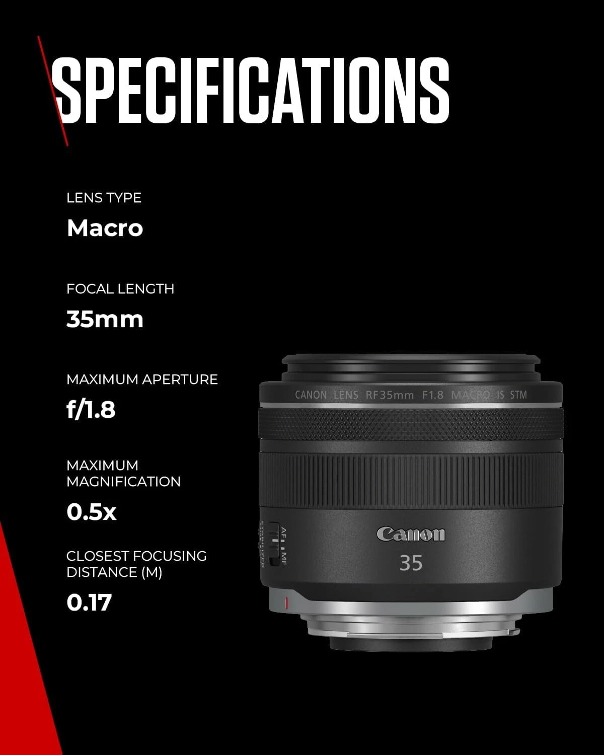 - Canon RF 35mm f/1.8 IS Macro STM Lens